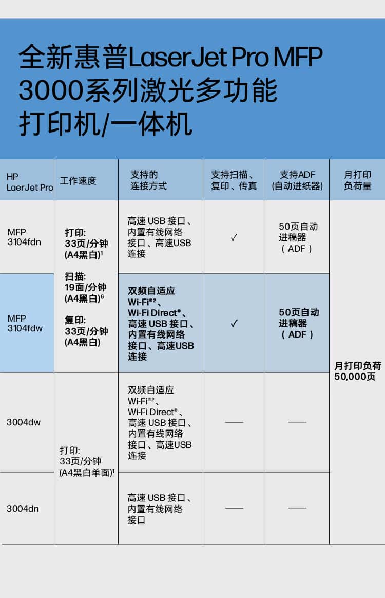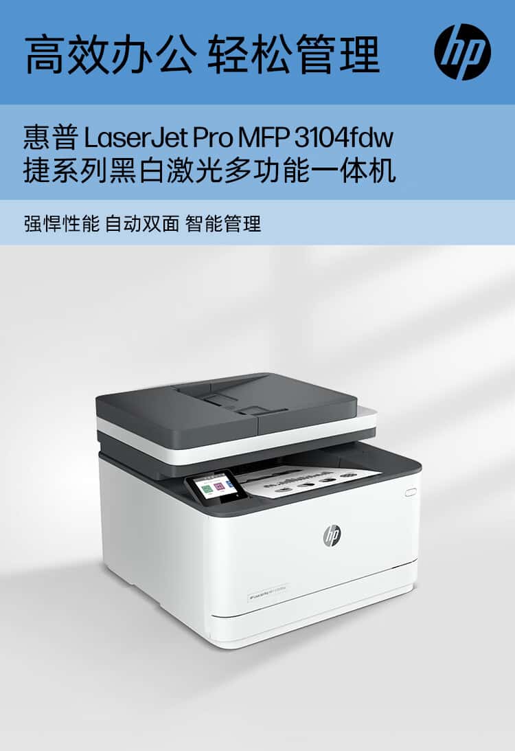惠普(HP)3104fdw自动双面黑白激光无线打印机自动输稿打印复印扫描传真四合一一体机智能管理