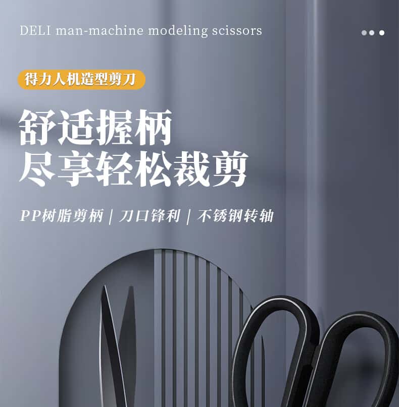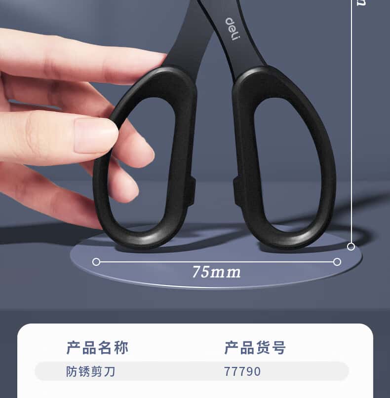 得力(deli)175mm人机造型剪刀黑色防锈处理办公用品黑77790