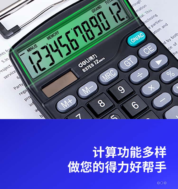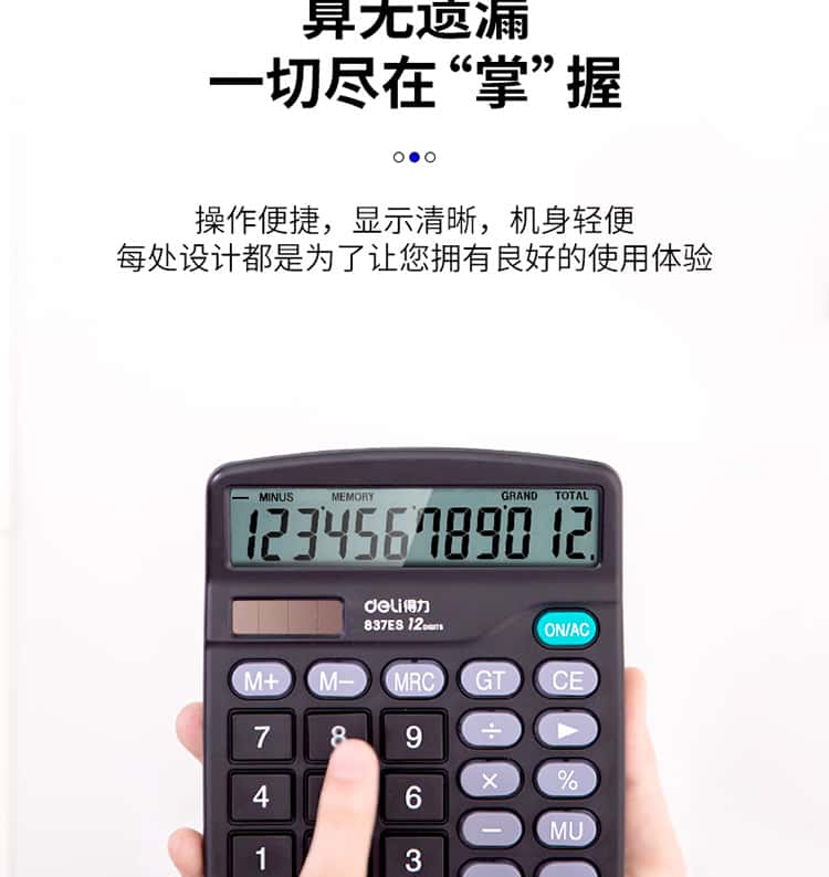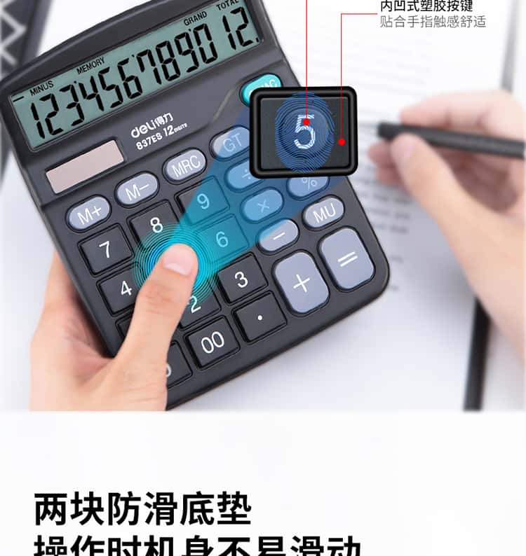 得力(deli)双电源桌面办公计算器12位大屏幕桌面计算机办公文具用品837ES
