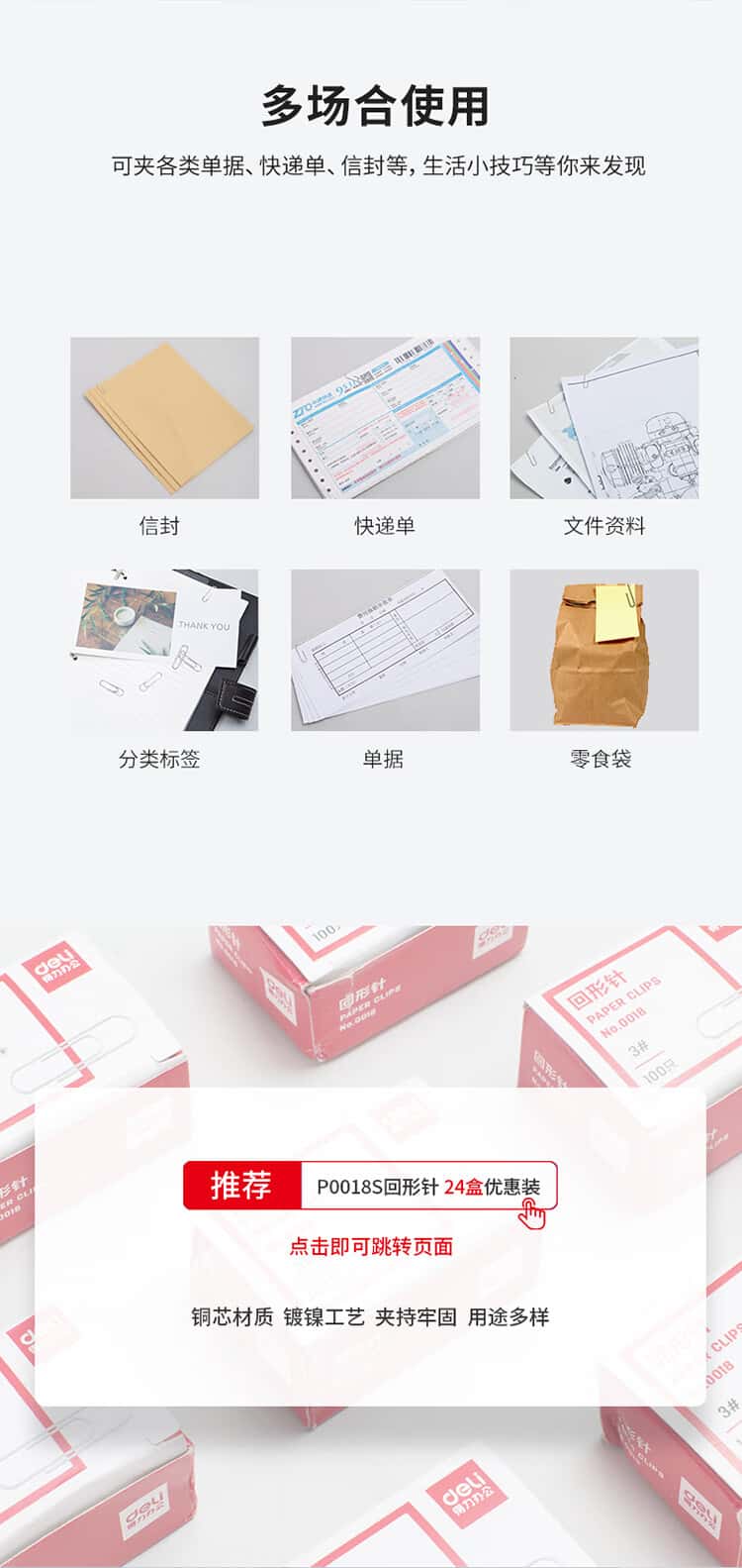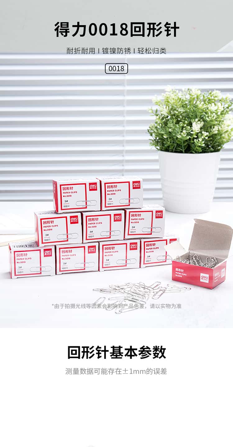 得力(deli)3#金属回形针镀镍防锈曲别针100枚/盒10盒装办公用品0018