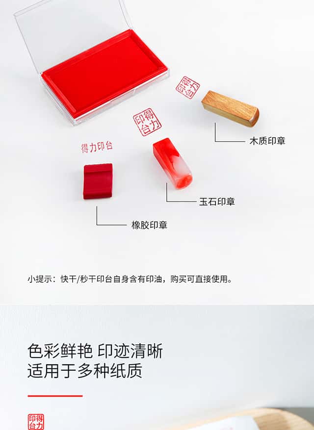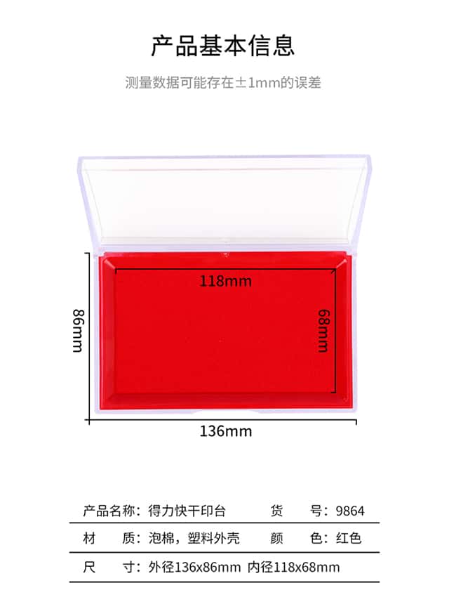 得力(deli)137*88mm透明外壳方形快干印台印泥办公用品红色9864