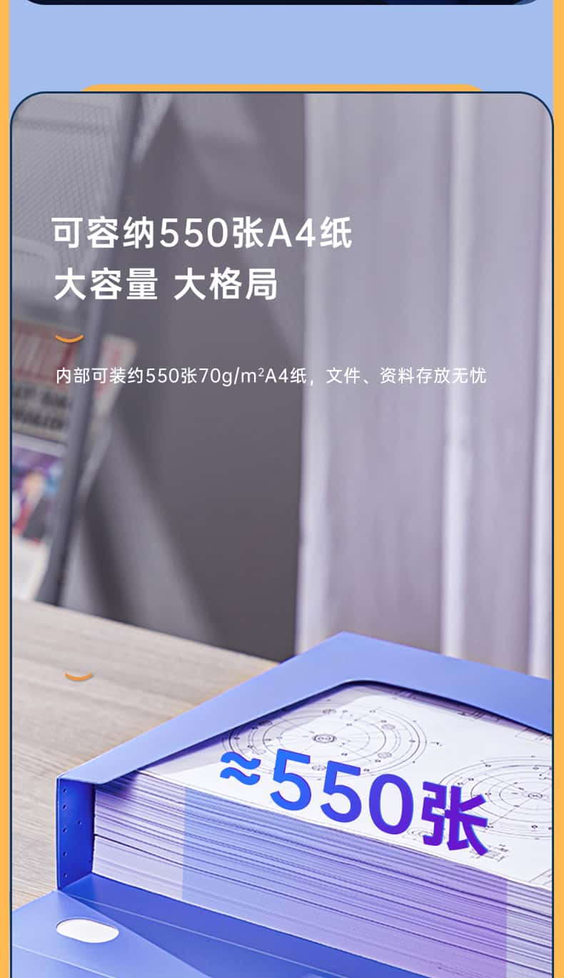 得力(deli)10只55mmA4粘扣档案盒塑料文件盒文件收纳资料盒办公用品升级背条孔槽27036蓝色