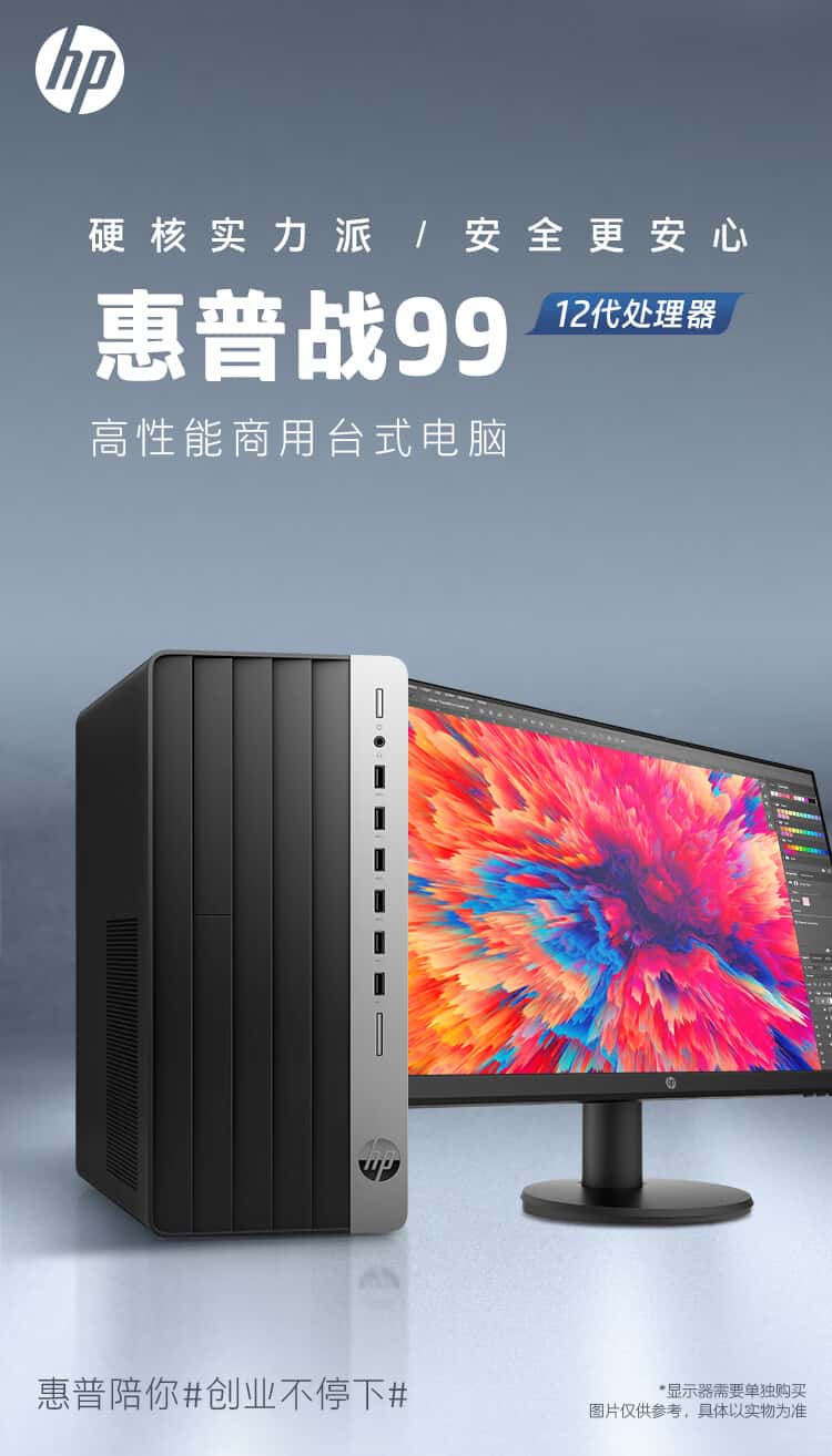 惠普(HP)战99商用办公电脑台式主机(12代i3-121008G512GSSDWiFi蓝牙Win11Office)23.8英寸显示器