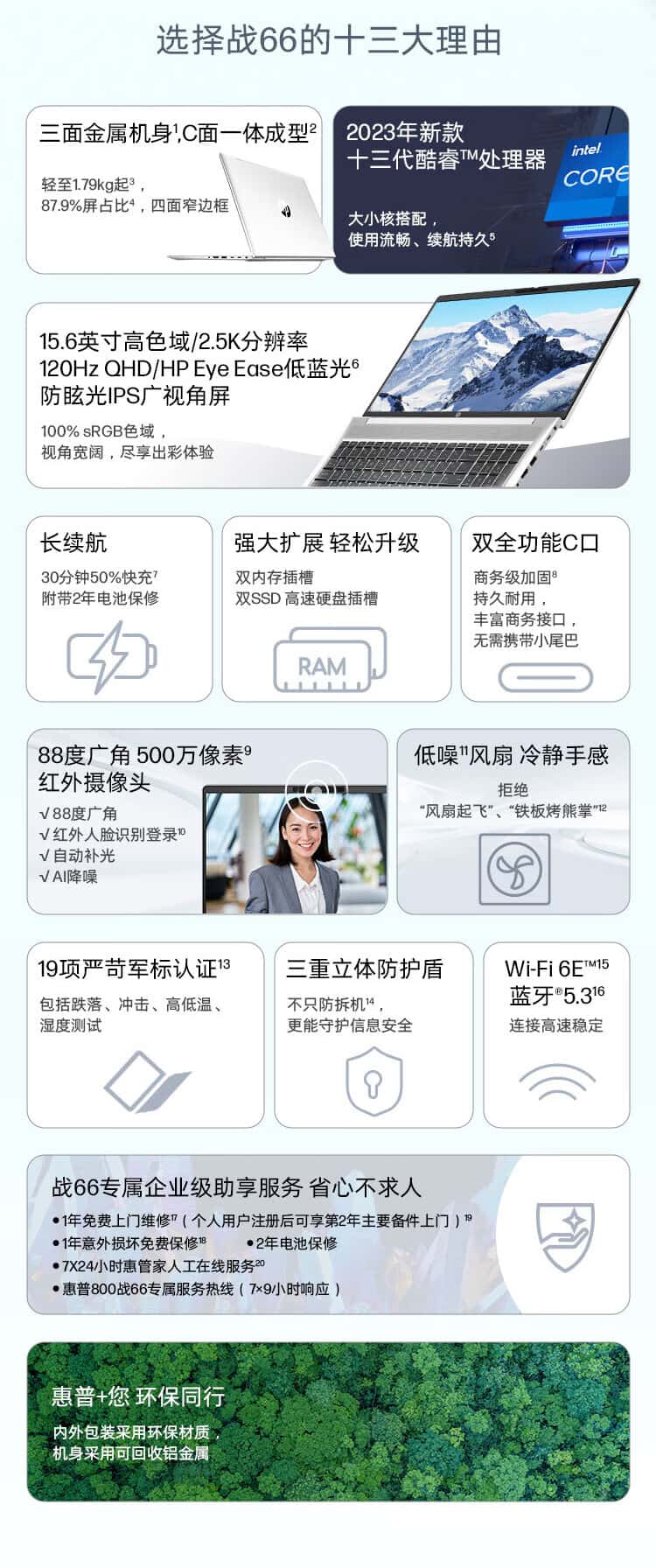 惠普(HP)战66六代酷睿15.6英寸(英特尔13代i5-1340P16G1T2.5K高色域屏120HZ)高性能轻薄本笔记本电脑