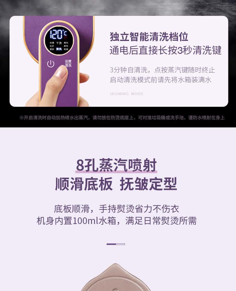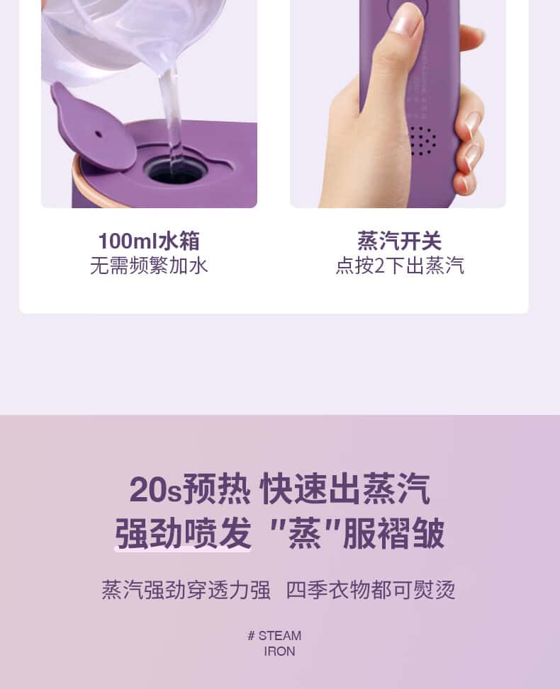帕德弗(PADEFU)手持挂烫机家用蒸汽电熨斗小型便携式熨烫机衣服神器紫色
