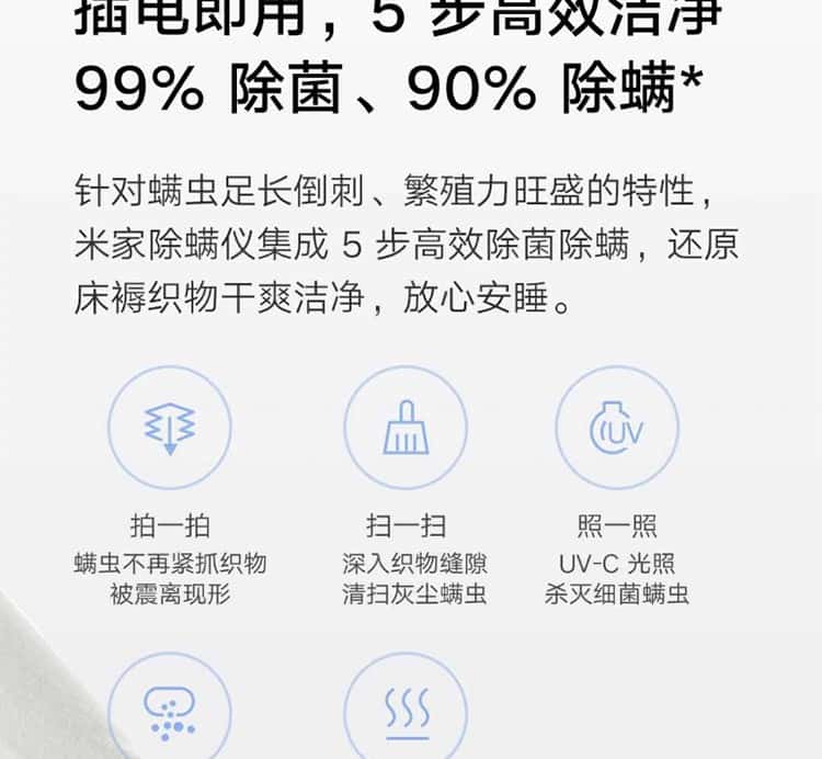 小米(MI)米家除螨仪家用床上除螨仪吸尘床用UV-C除菌除螨机床铺非IOT联动米家除螨仪