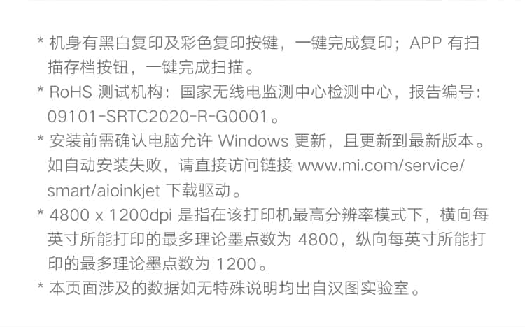 小米(MI)米家喷墨打印一体机打印/复印/扫描/照片彩色打印多合一家用打印学生打印手机APP无线打印