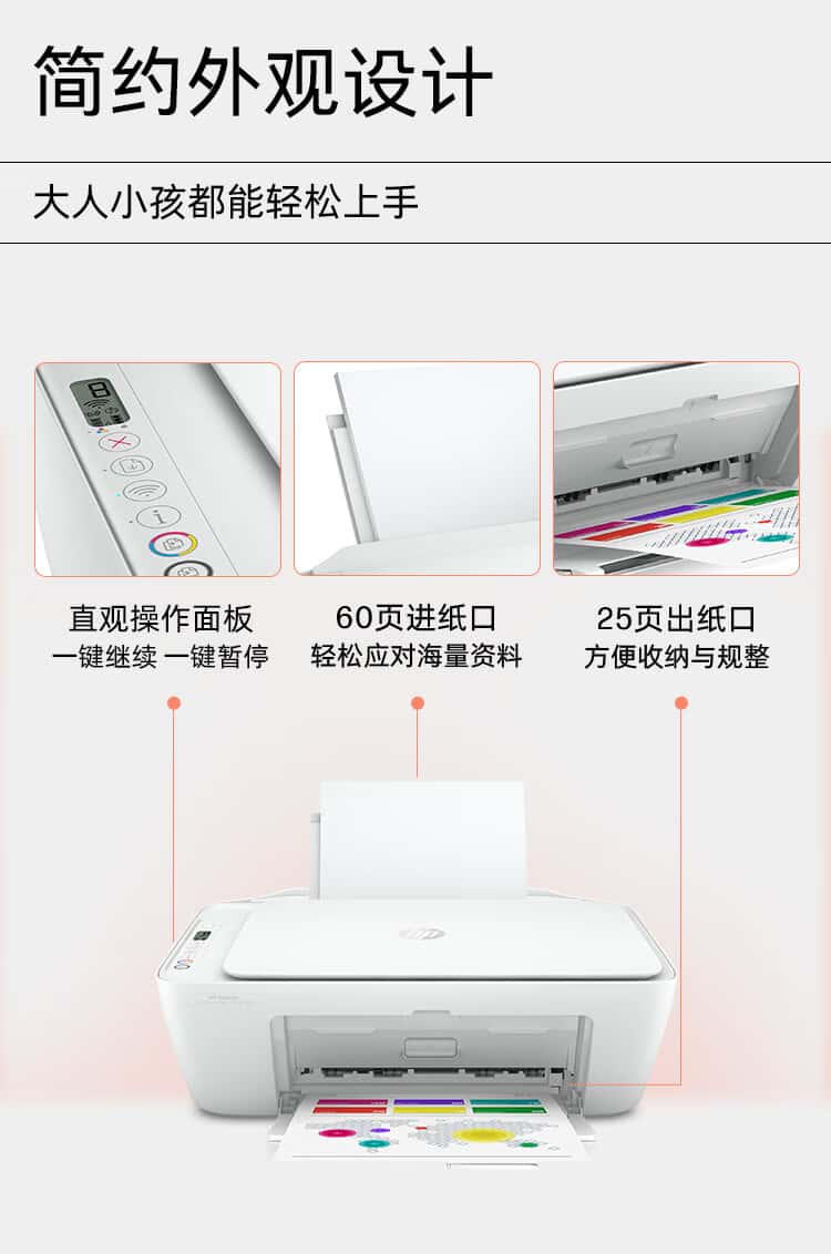 惠普(HP)DJ4825彩色无线喷墨打印机家用大印量低成本照片打印机学生家用微信打印(打印复印扫描)