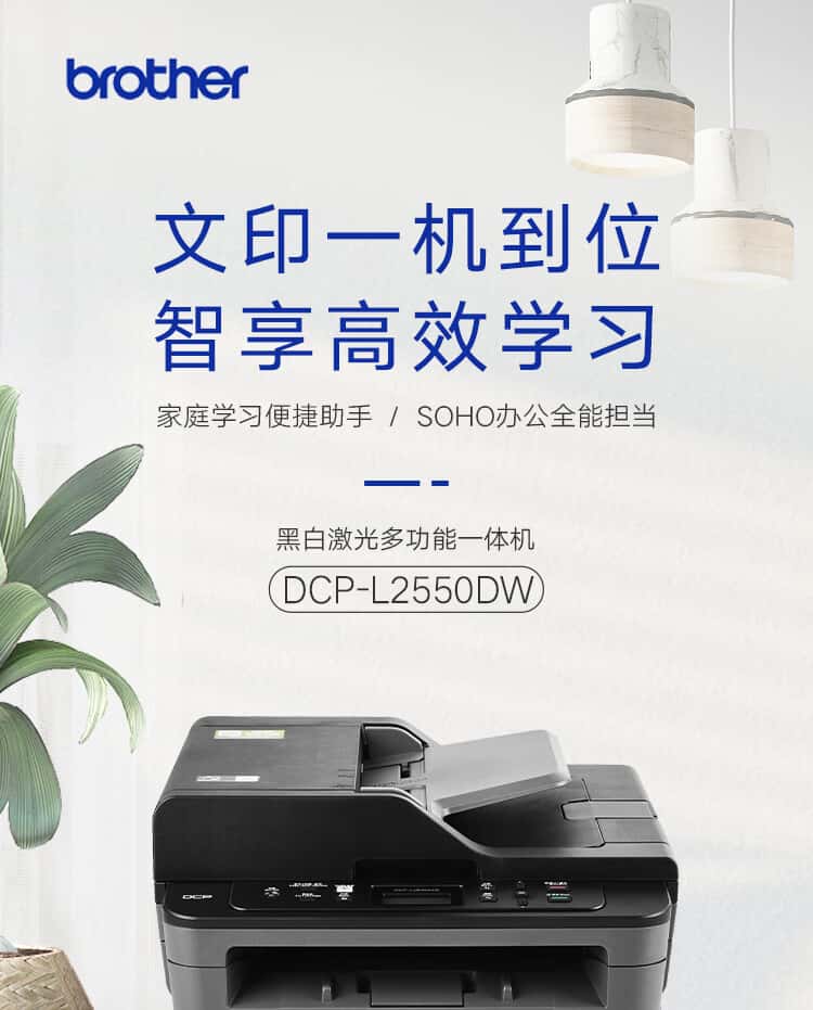 兄弟(brother)DCP-L2550DW黑白激光双面商用办公打印机手机无线有线学生家用自动输稿一体机复印扫描