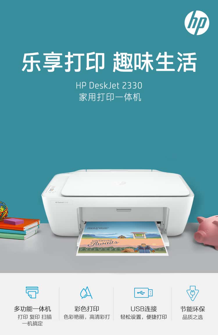 惠普(HP)DJ2330彩色喷墨入门级一体机打印扫描复印学生作业打印家用打印(2332白色款)