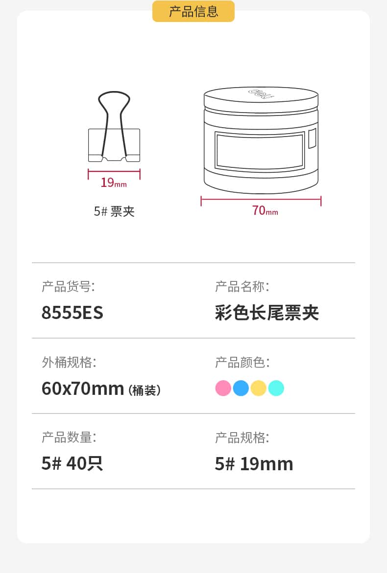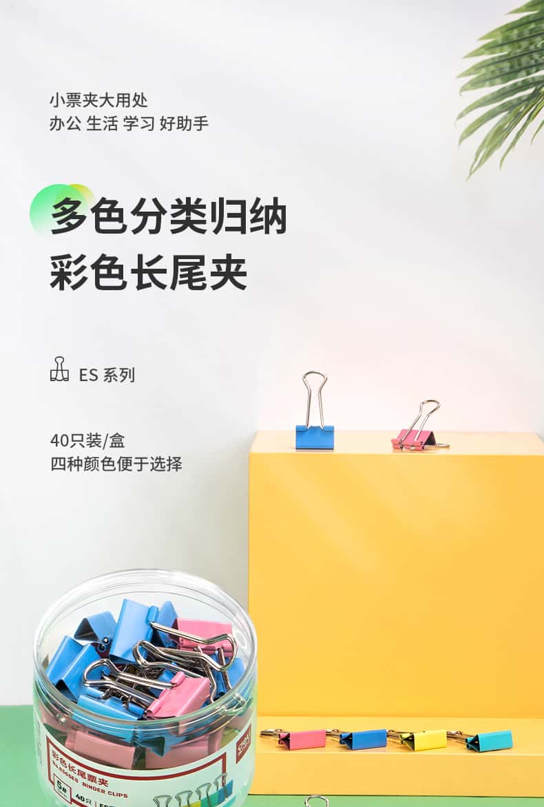 得力(deli)40只19mm彩色长尾夹票夹5#小号金属燕尾夹票据文件夹子办公用品8555ES