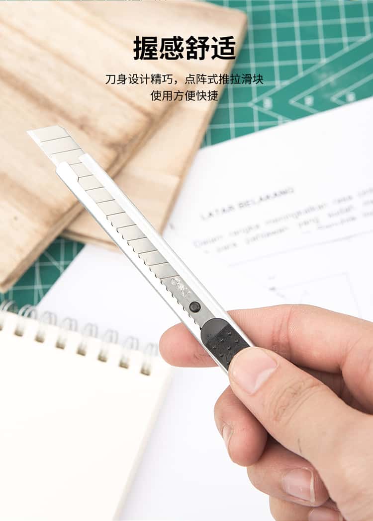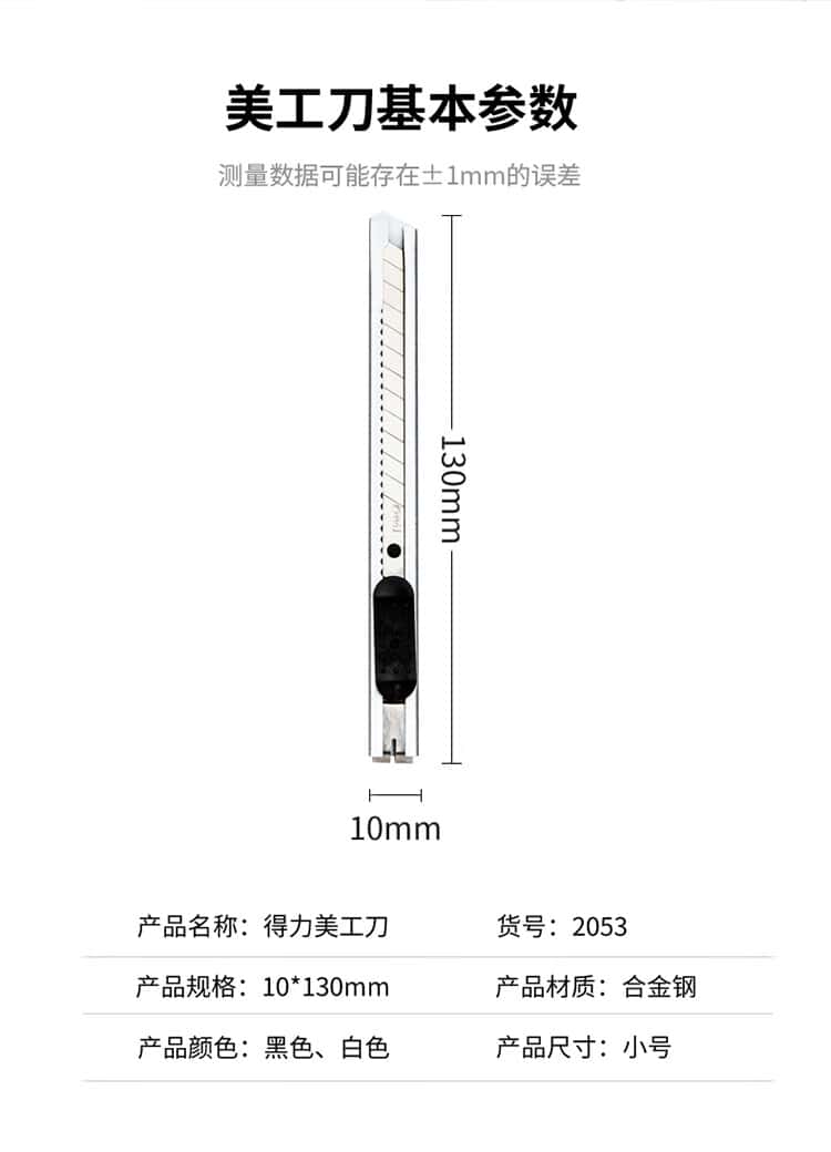 得力(deli)小号薄款金属外壳办公家用美工刀/裁纸刀办公用品2053