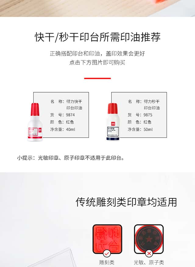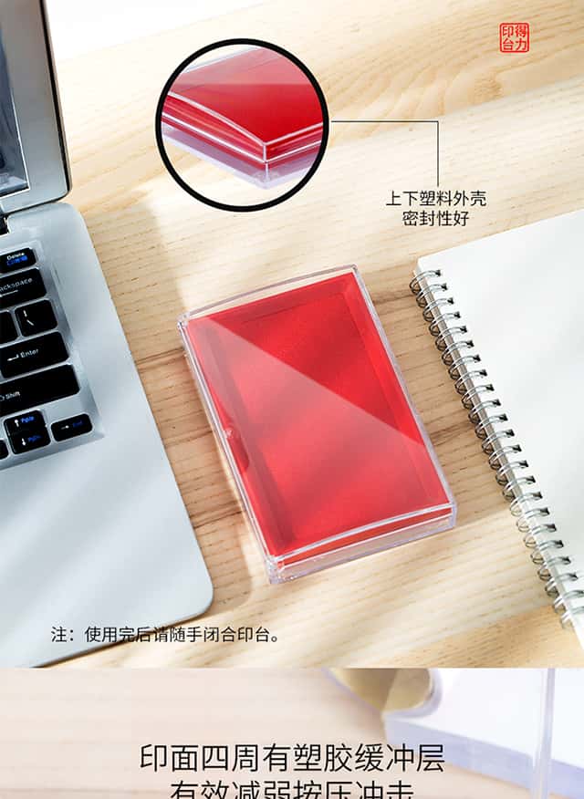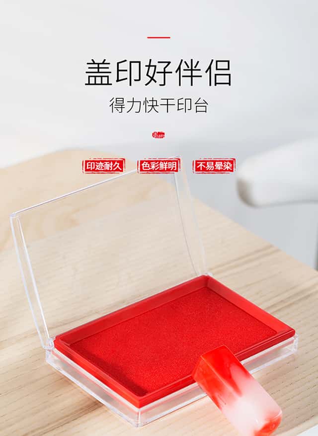 得力(deli)137*88mm透明外壳方形快干印台印泥办公用品红色9864
