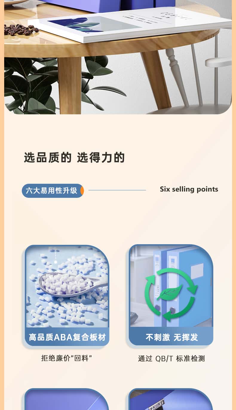 得力(deli)10只55mmA4粘扣档案盒塑料文件盒文件收纳资料盒办公用品升级背条孔槽27036蓝色