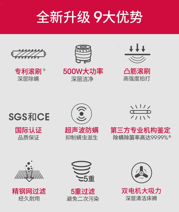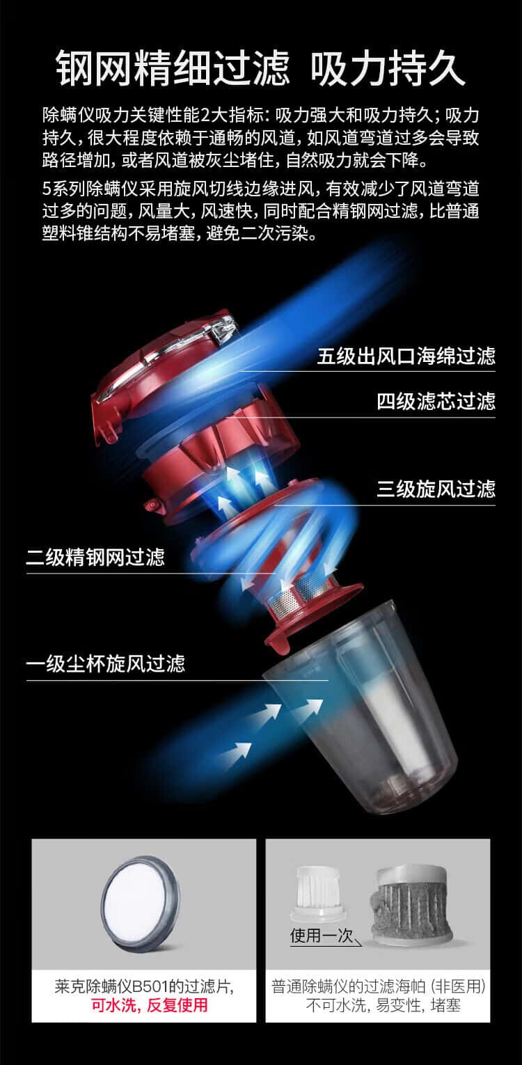 莱克吉米除螨仪B501家用床上小型手持紫外线杀菌吸尘神器去螨虫超声波升级款除螨机【甄拍B501】